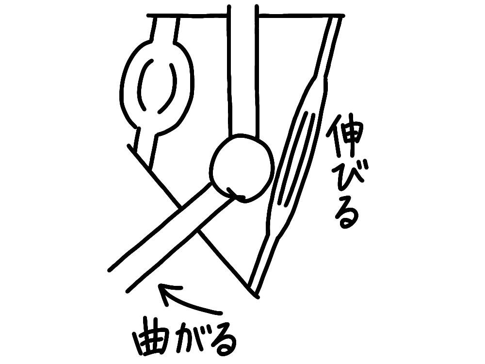 やわらかさの説明の前に、筋肉と関節の動きについて説明しておきます。関節が曲がったところからスタートです。