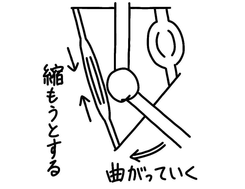 4.その筋肉が縮もうとする力を発揮するので、関節が曲がっていきます。