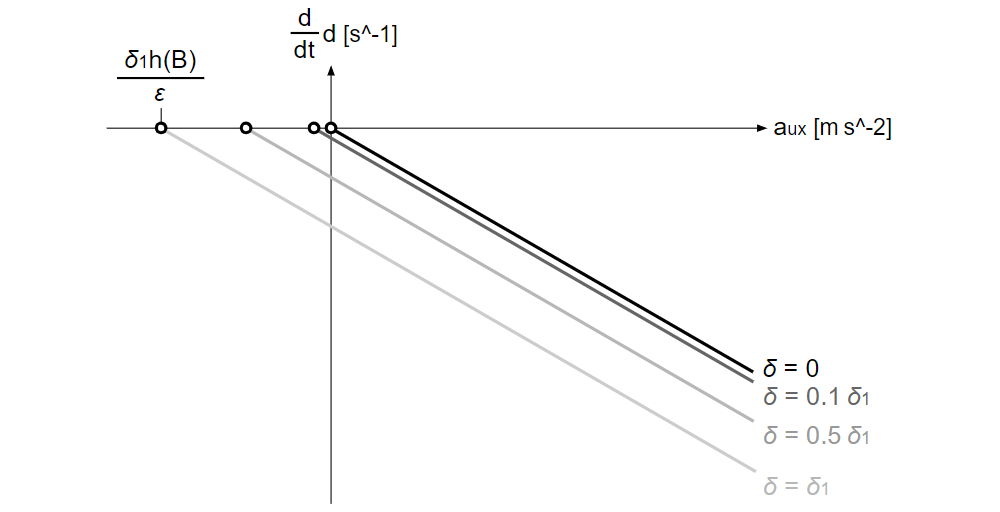 \(\displaystyle \frac{d}{dt}d=\displaystyle \frac{C}{g} \displaystyle \frac{d}{dt}a_{ux}=-C(εa_{ux0}-δh(B))\)