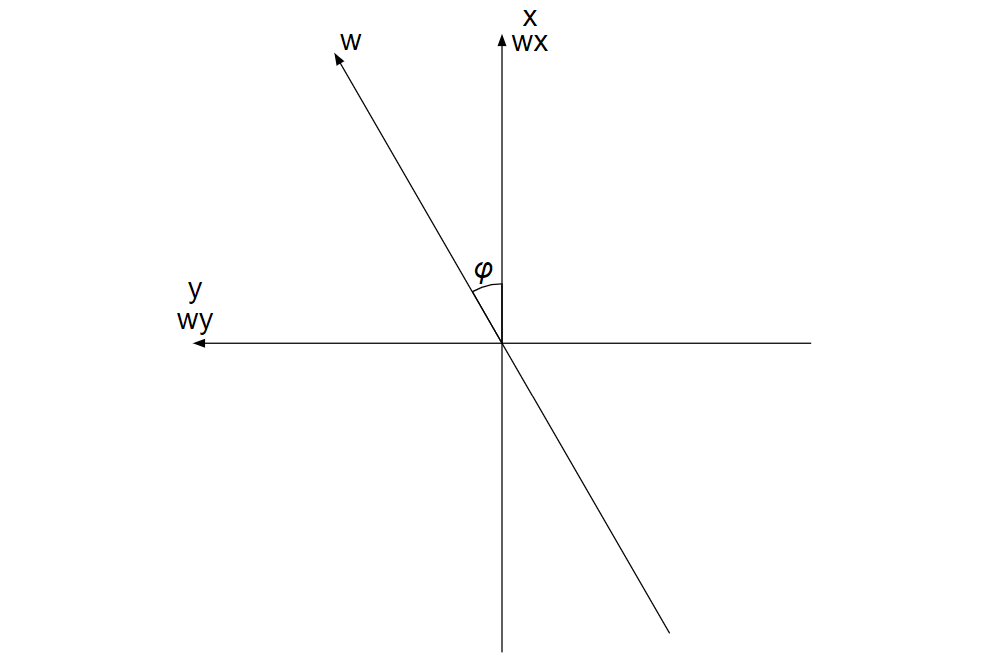 \(w\)軸が\(x\)軸の正の向きとのなす角を\(θ\)とする。