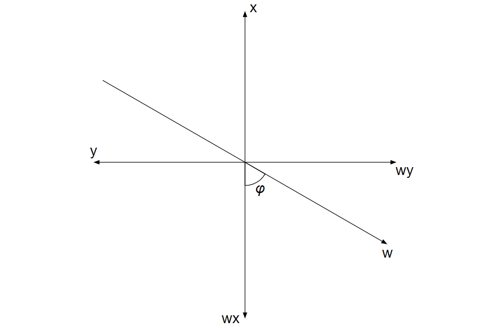 \(wx\)軸が\(w\)軸とのなす角を\(φ\,(0 \leq φ \leq \displaystyle \frac{π}{2})\)とする。