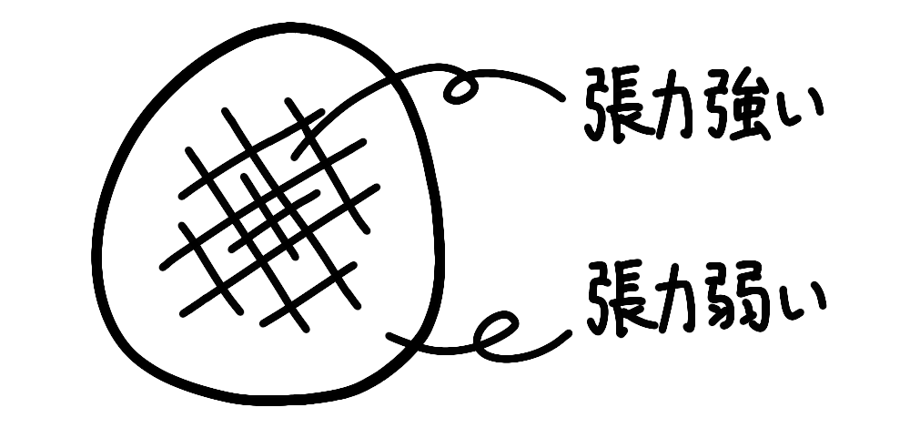 筋肉増強剤を使用した筋肉は、外側の筋張力に比べ、中心付近の筋張力が強くなります。中心付近は張力が強く、外側は張力が弱くなるのです。