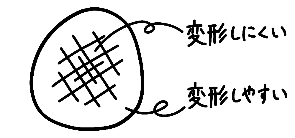 この変形しにくさの偏りは、基本的にはどんな状態でも表れます。