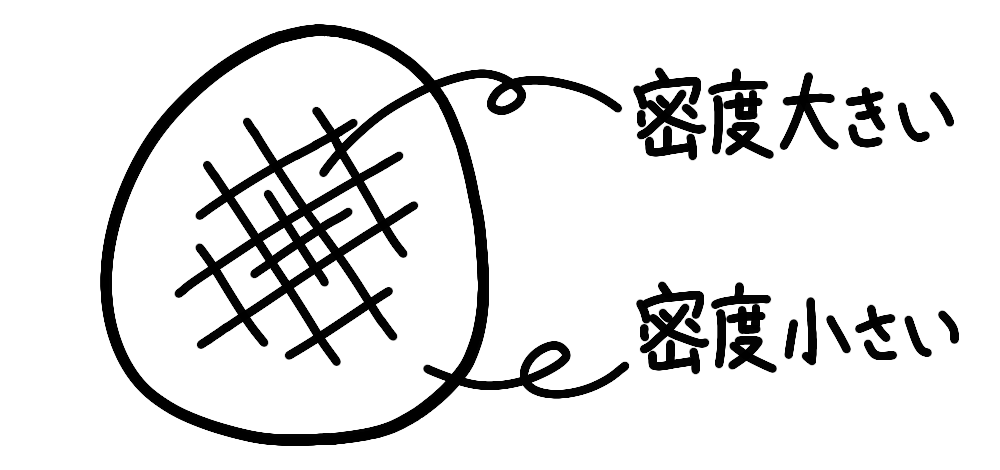 筋肉増強剤を使用した筋肉は、外側の密度に比べ、中心付近の密度が大きくなります。中心付近は密度が大きく重く、外側は密度が小さく軽いのです。