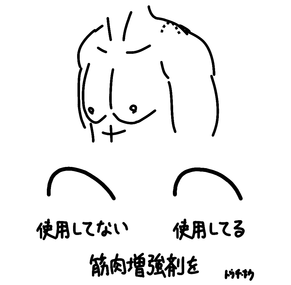 ちなみに、一般的に言われている筋肉がムキムキになるというような単純な話ではないです。(ナチュラルでもものすごく鍛えている人は筋肉量が多いですし、筋肉増強剤を使用していても管理の仕方によっては筋肉量を抑えることができます。)筋肉量ではなく、筋肉の質、そして筋肉の形に違いがあるのです。