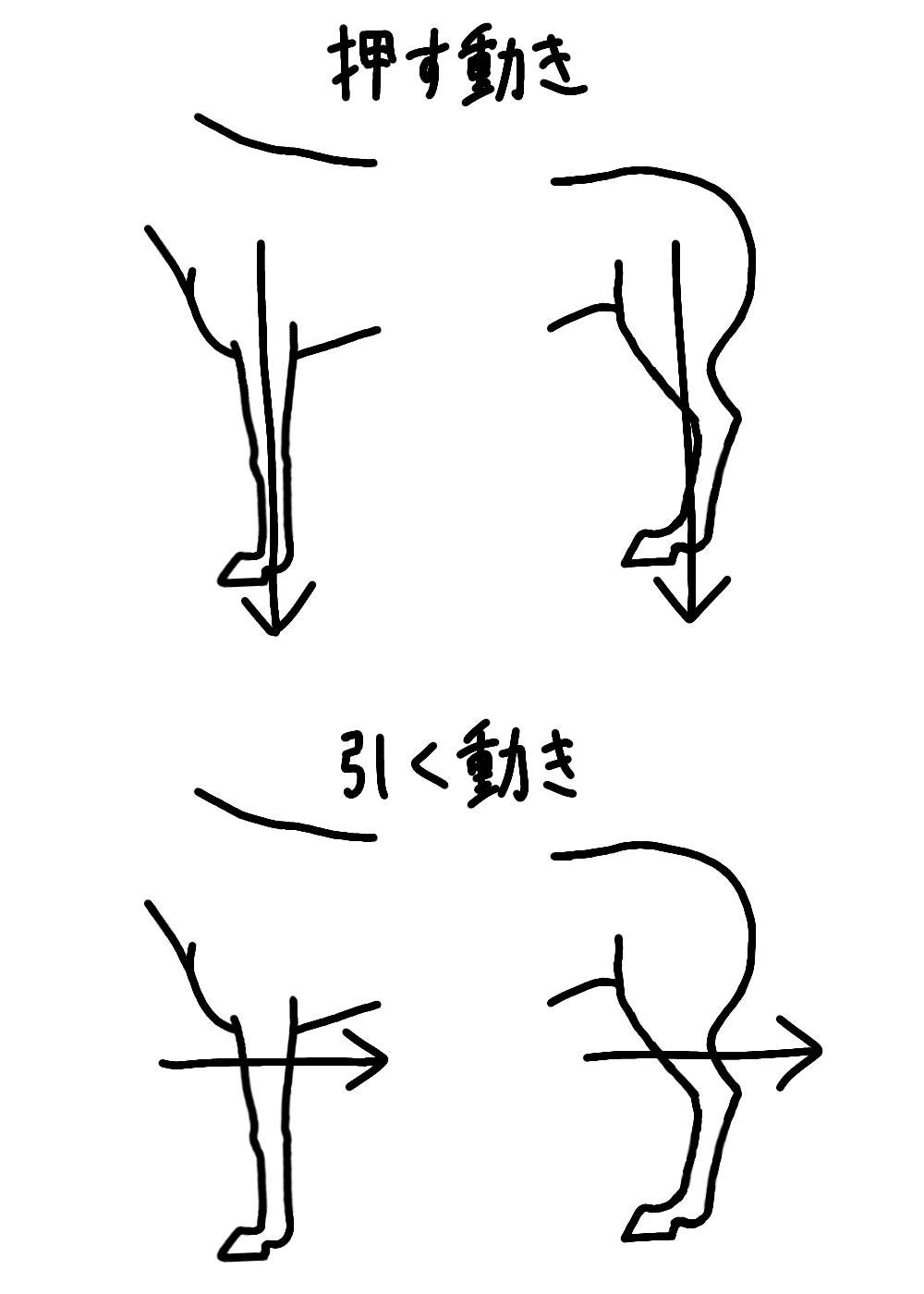 押す動き・引く動きを実際の動きに置き換えるとわかりやすくなる。もうだんだんわかってきただろ?