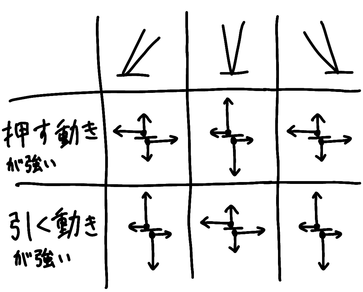 さっき言ってた、押す動きと引く動きの見分け方のヒントってこれのこと?