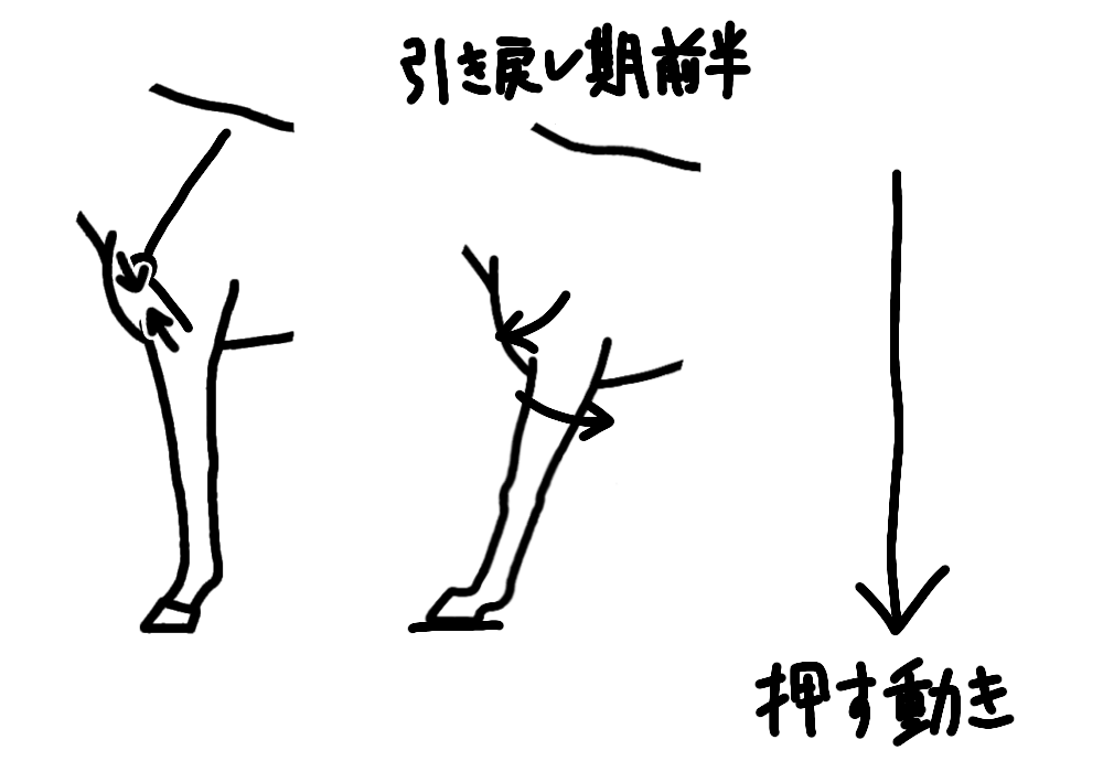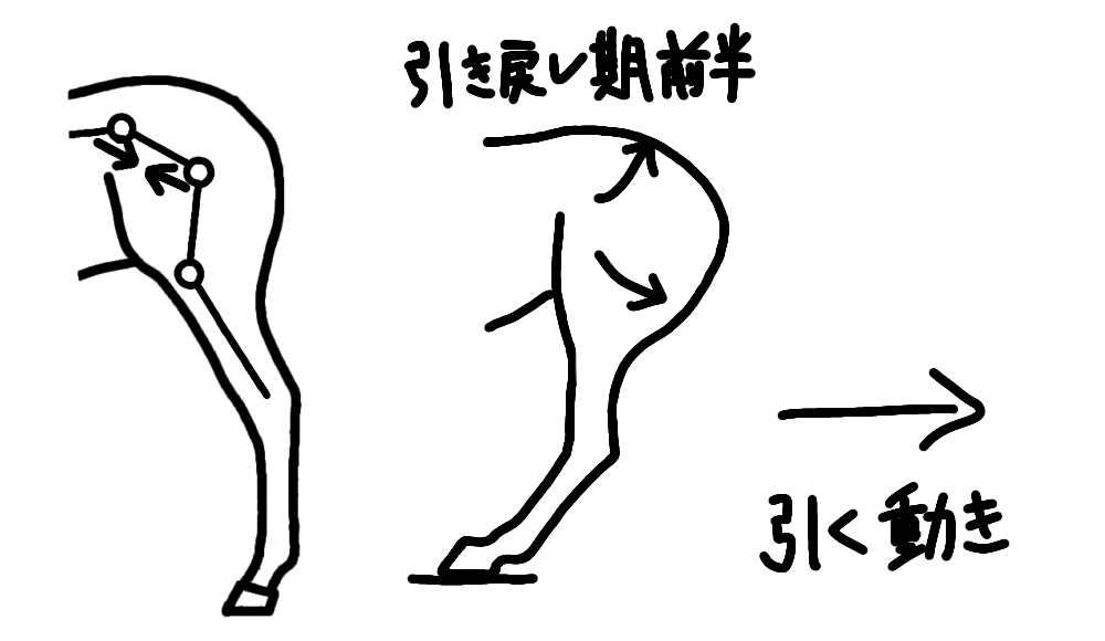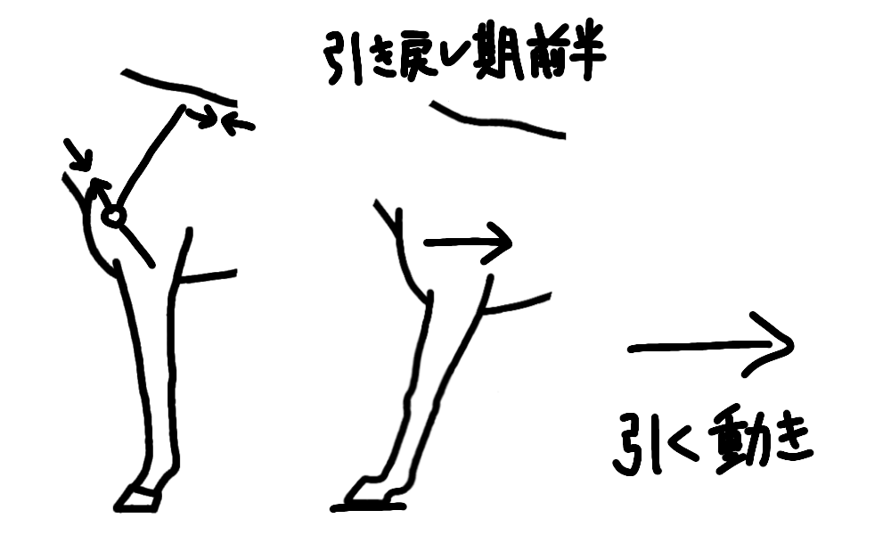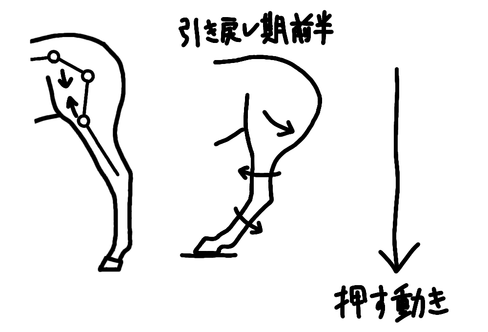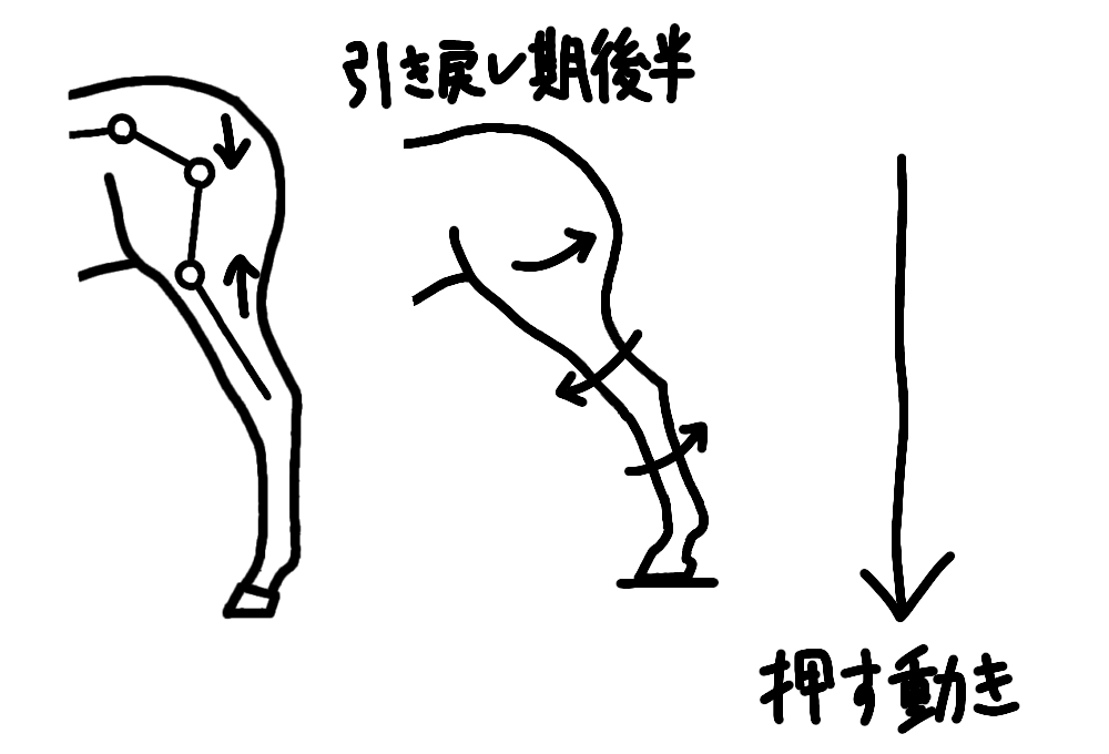 引き戻しの動きは、肢を伸ばして地面を押す動きと、肢全体を後方に引く動きに分解できます。