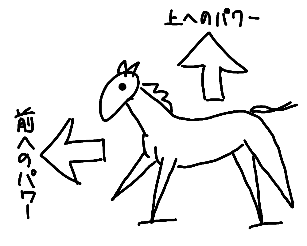 推進力を説明するときに馬全体のパワーの話をしましたが、その馬全体のパワーには前へのパワーと上へのパワーの2つのパワーが含まれています。