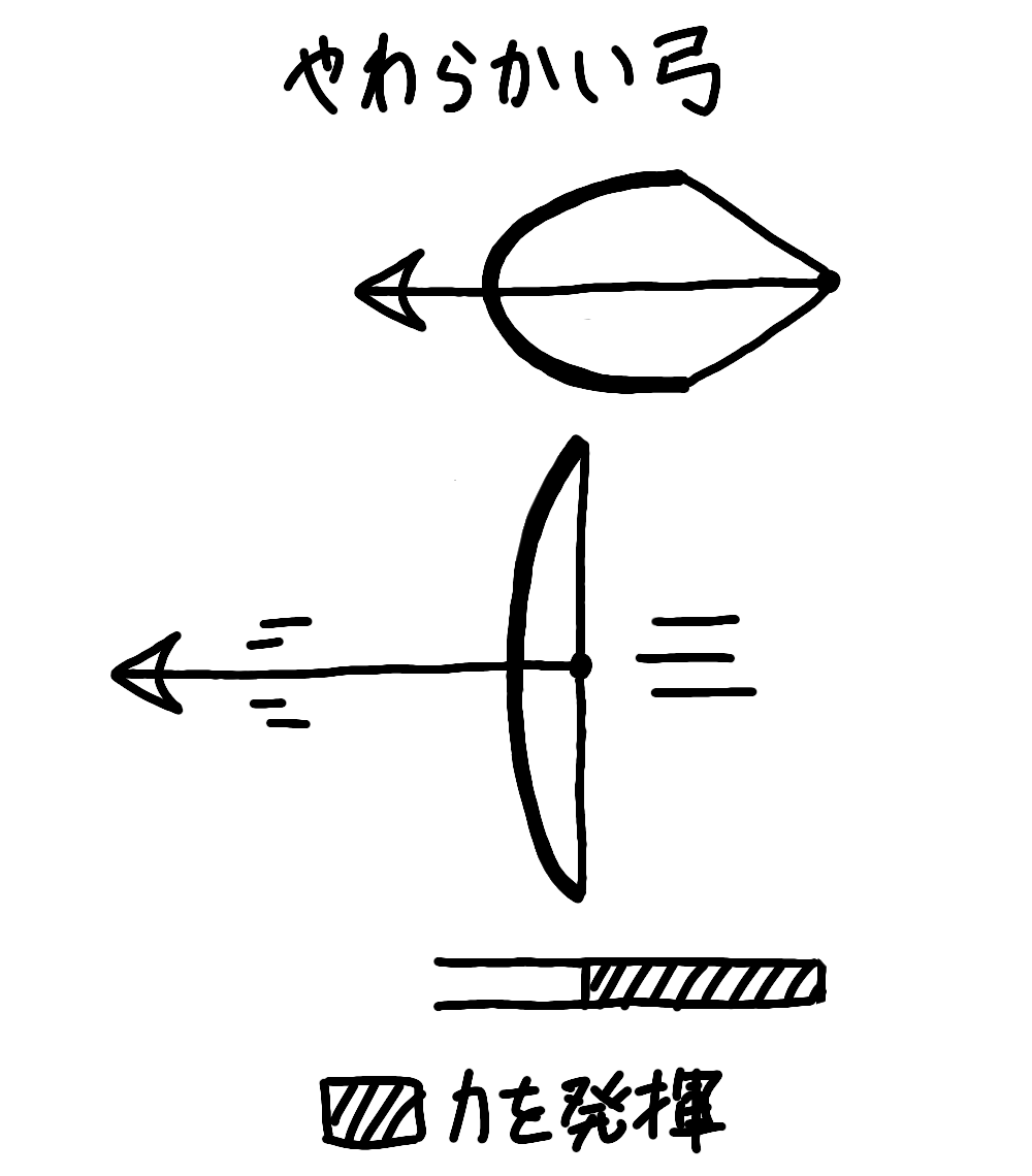 やわらかい弓=バネのやわらかい筋肉、硬い弓=バネの硬い筋肉 ってことかな。よくわかんないけど。