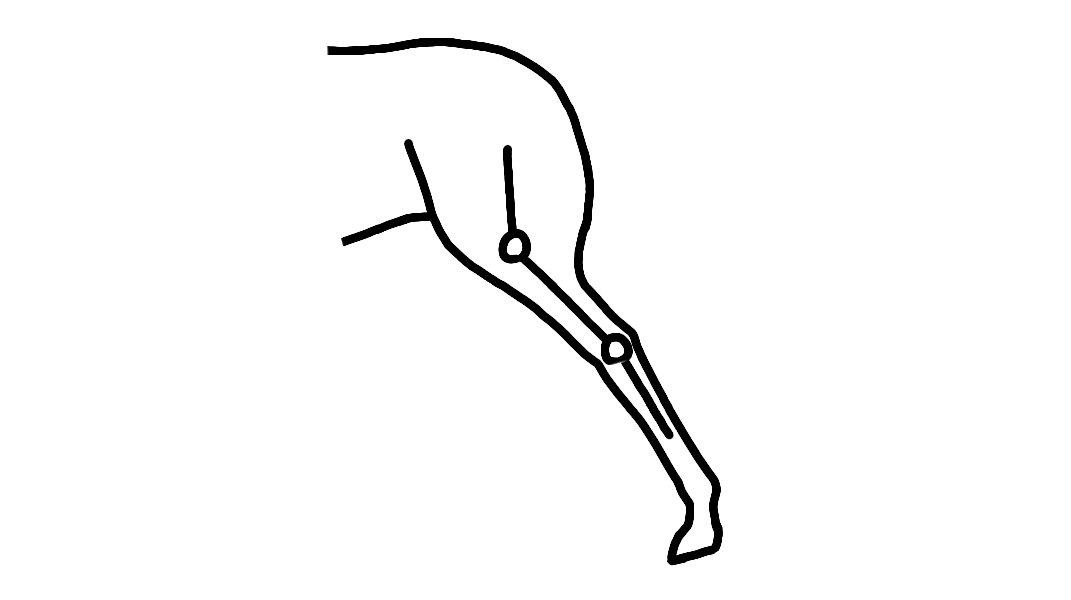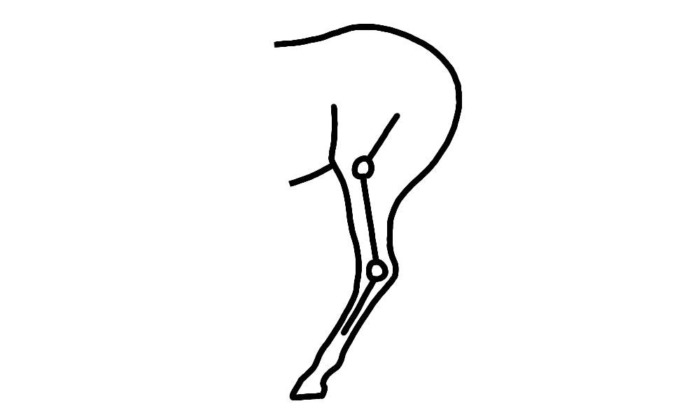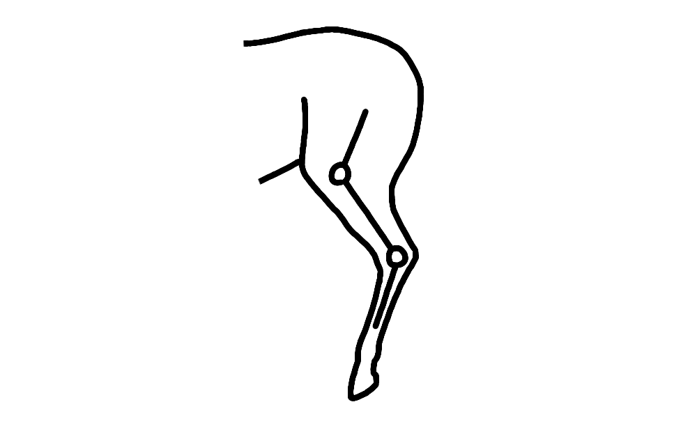 膝関節と飛節は連動して動きます。膝関節が曲がれば飛節も曲がり、膝関節が伸びれば飛節も伸びる構造になっています。
